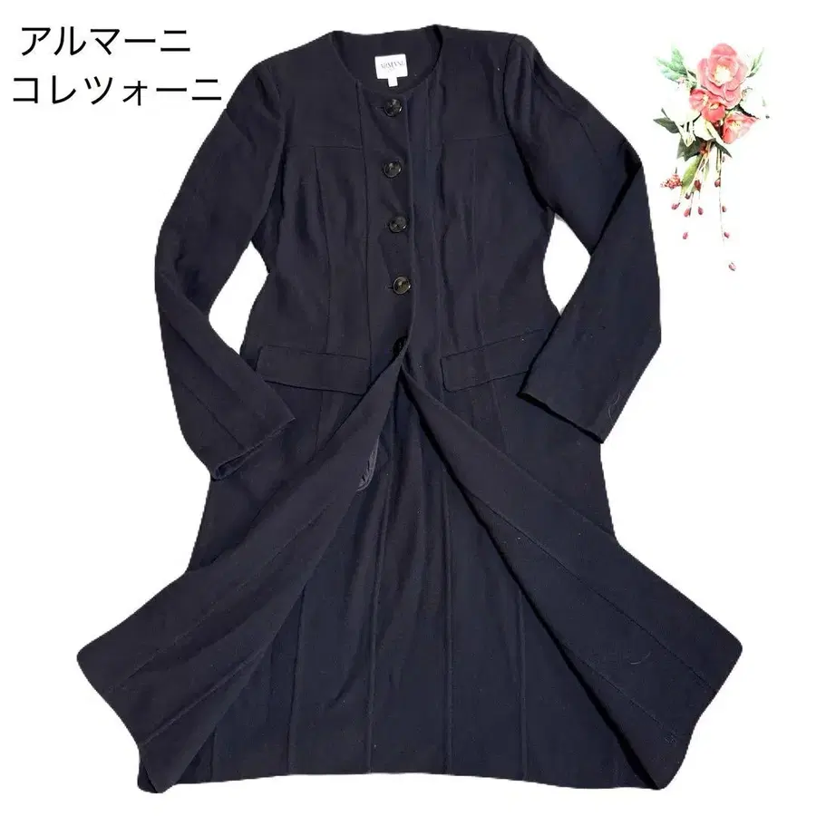 아르마니 코레치오니 포멀 롱 코트 실크 혼방 노카라