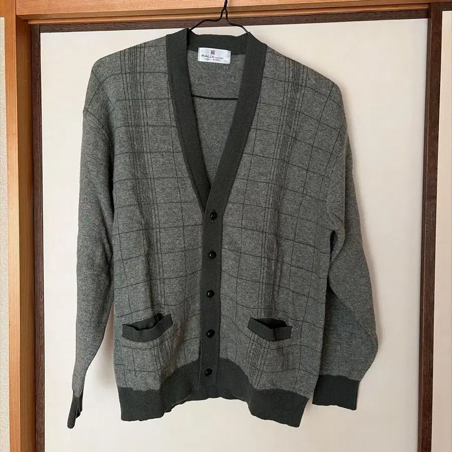 RALDI HOUSE 남성용 그레이 체크 무늬 가디건