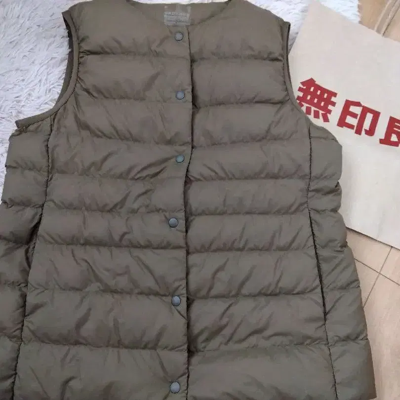 미사용 무인양품 경량 다운 포켓터블 노카라 베스트
