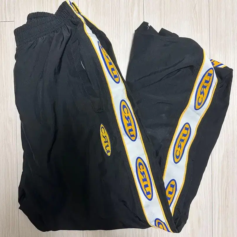 CRU 블랙 팬츠 사이드 로고 구제 의류