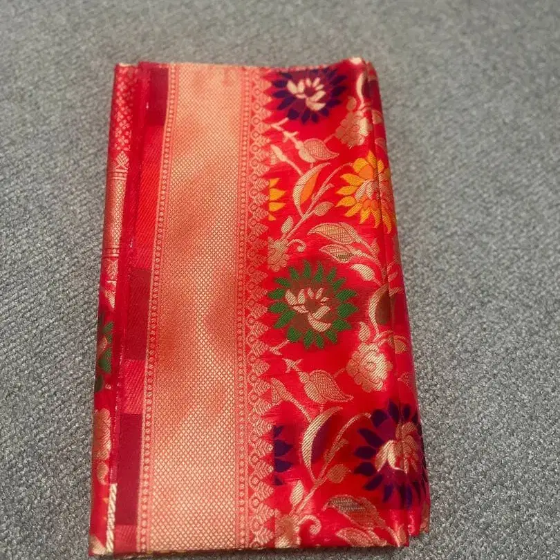 빨간색 x 골드 꽃무늬 사리 민족 의상 전통 패턴