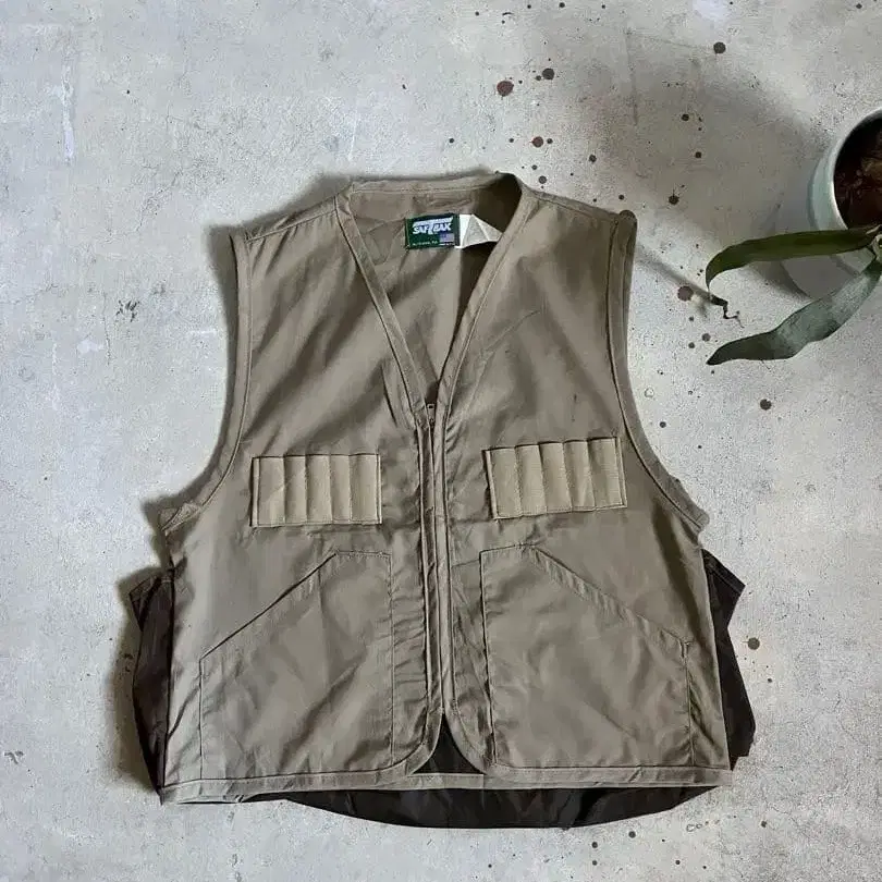 빈티지 80s 헌팅 베스트 베이지 브라운 미국 USA 구제 의류