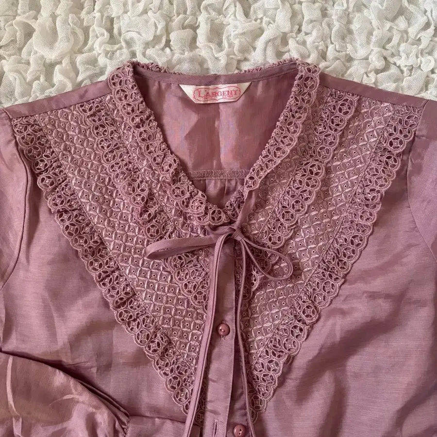 [vintage] 연보라색 레이스 옷깃 긴팔 셔츠