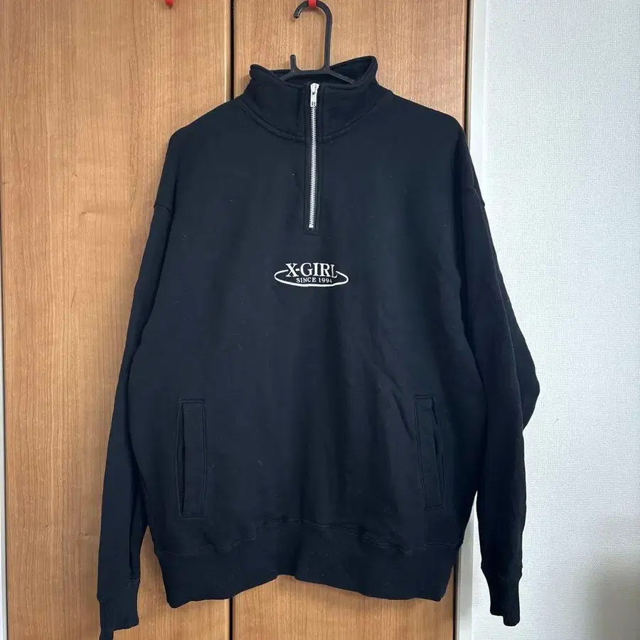 X-GIRL 블랙 하프 지퍼 맨투맨