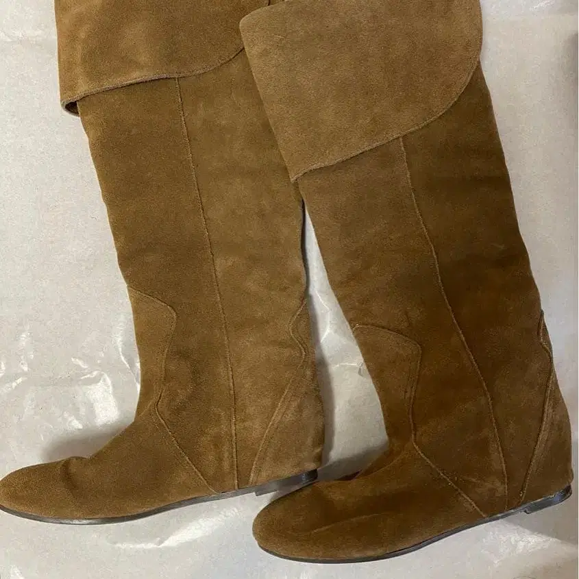 스웨이드 천연 가죽 베이지 브라운 롱 부츠 니하이 미사용 새상품