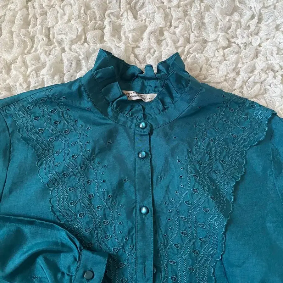 [vintage] 터콰이즈 자수 하이넥 셔츠