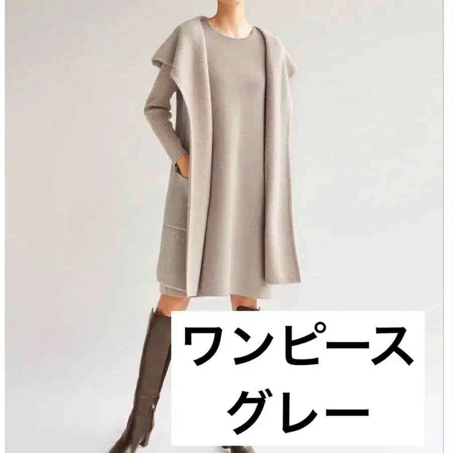 택 포함 새상품 그레이 슬리브리스 니트 원피스 터틀넥 M 무릎 위