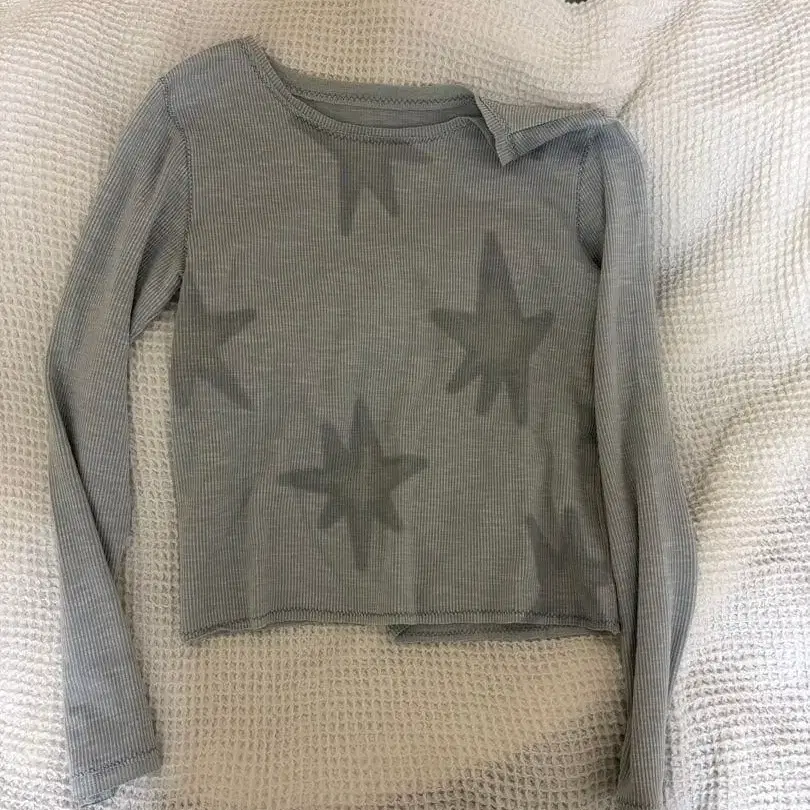 tina jojun 블루 별 패턴 긴팔 티셔츠 롱T 스타