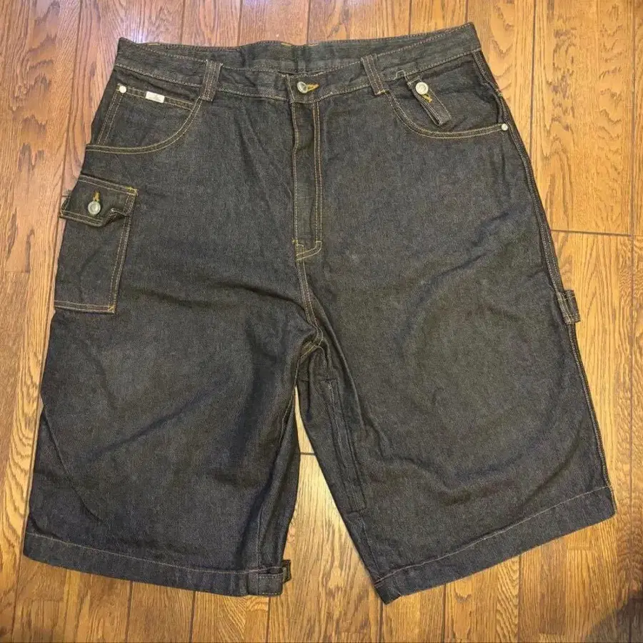 assassyn 마신 린넨 다크 데님 카고 숏팬츠
