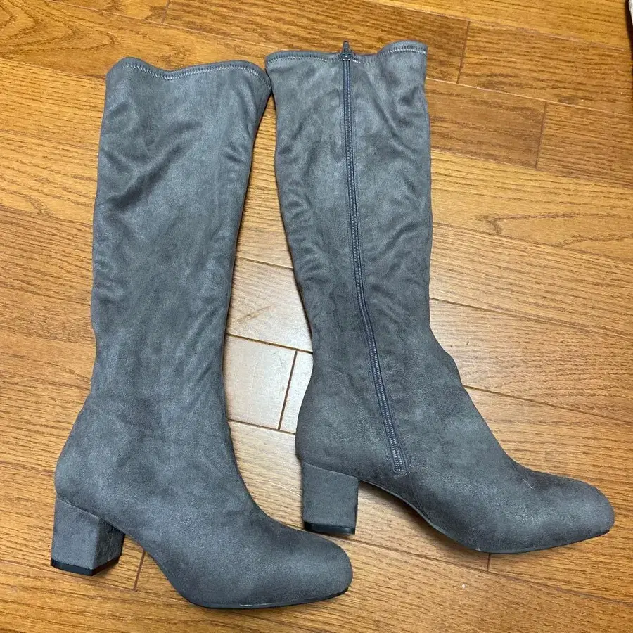 Vivi. 그레이 스웨이드 롱 부츠 힐 5cm