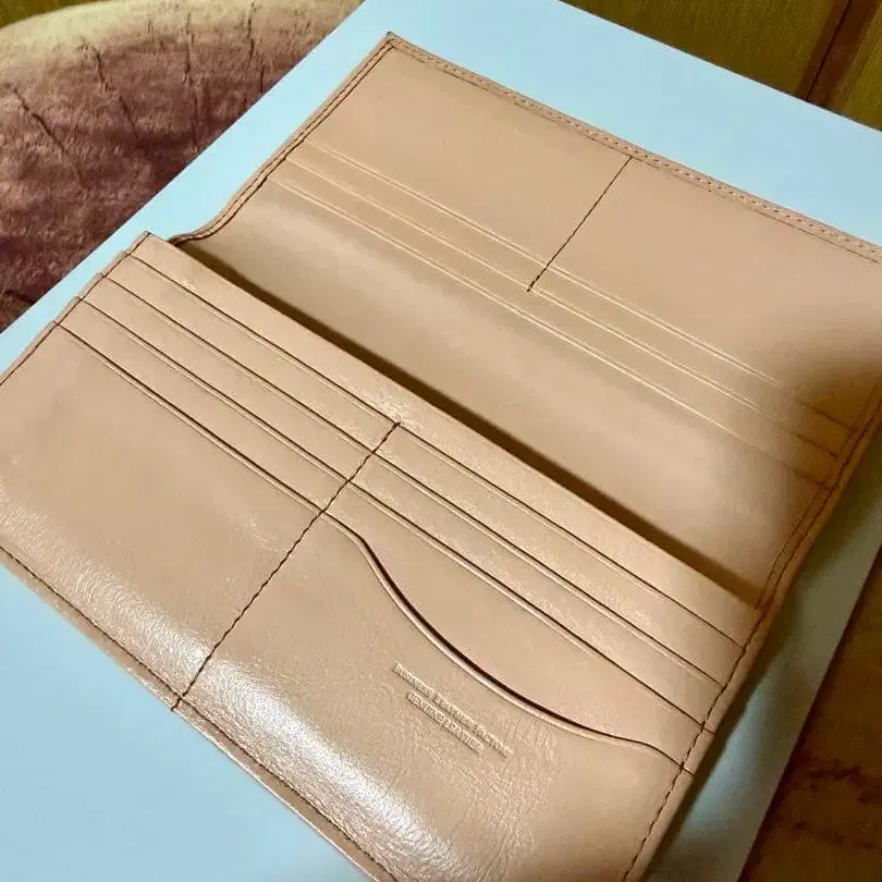 Business Leather Factory 천연 가죽 장지갑 베이지
