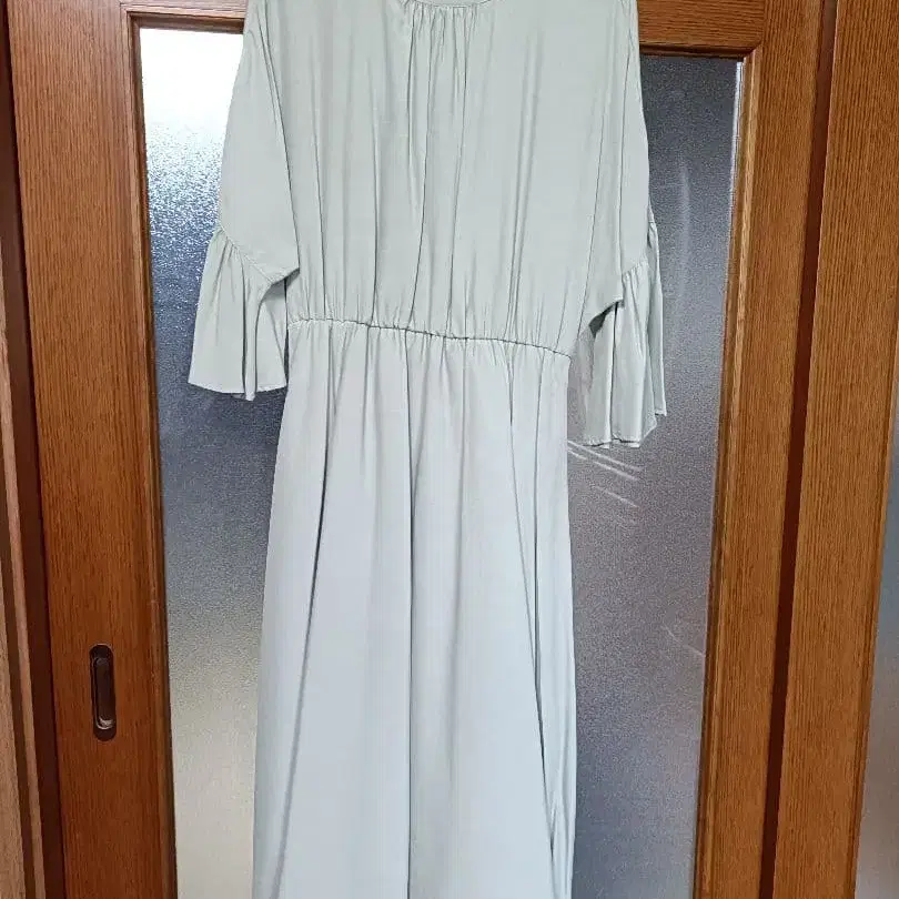 라이트 그린 플레어 슬리브 롱 원피스 LA MAISON