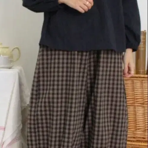 사만사 모스모스 패턴 모듬 밑단 절개 와이드 팬츠 모카