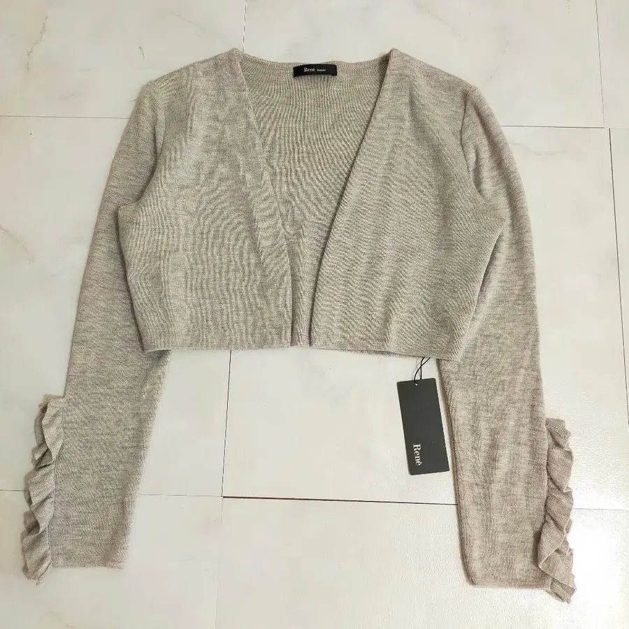 택 포함 르네 Rene 비쥬 프릴 슬리브 가디건