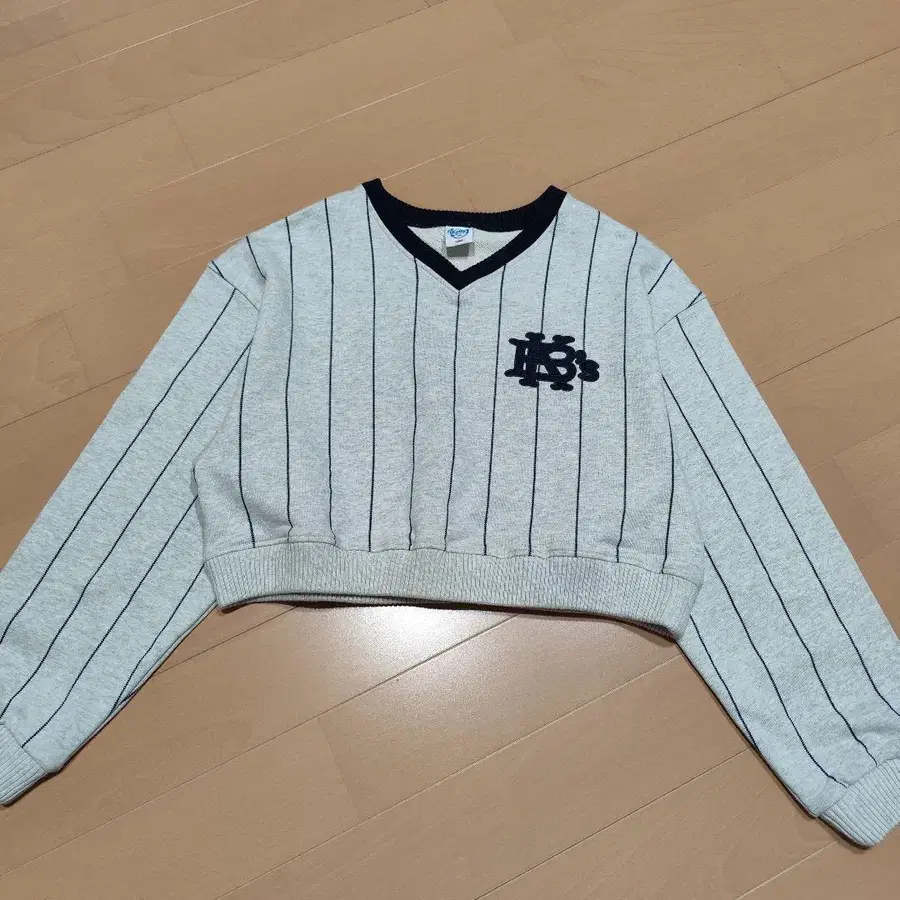 KEBOZ 스트라이프 V넥 크롭 맨투맨 트레이닝복 L