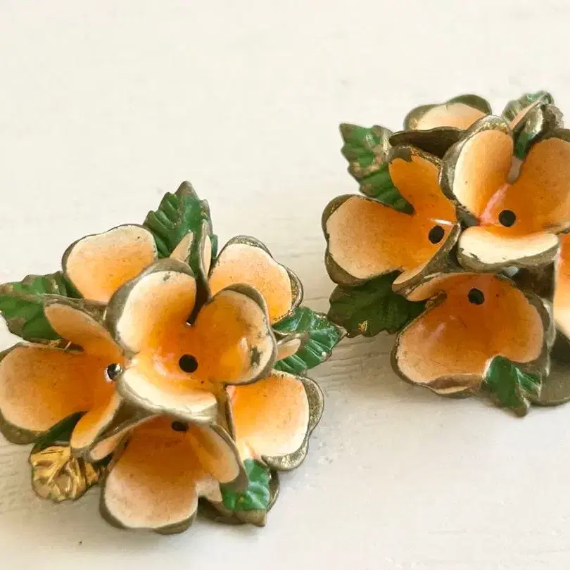빈티지 귀걸이 오렌지 주황 레트로 플라워