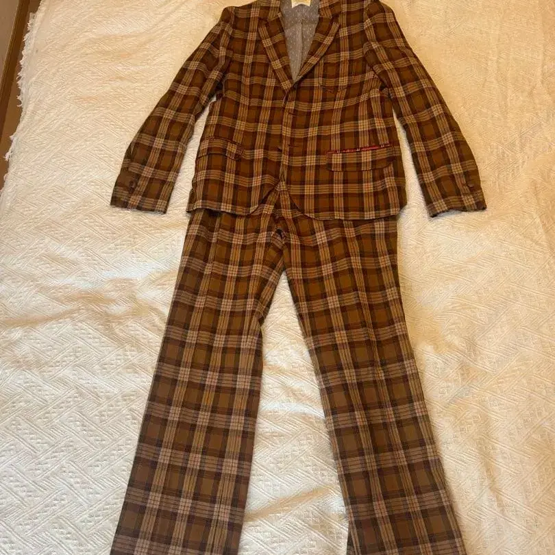 GUELL MUSTARD 체크 무늬 캐주얼 수트