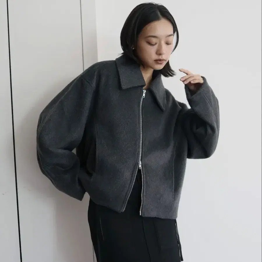 [ hellam ] 페이크 비버 숏 기장 W 지퍼 블루종