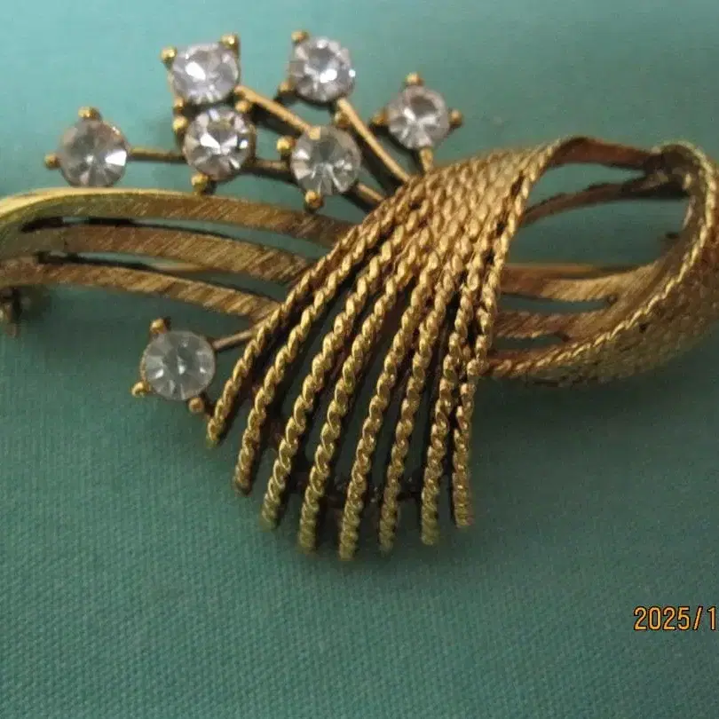 M.Jent 골드톤 코스튬 주얼리 큐빅 브로치