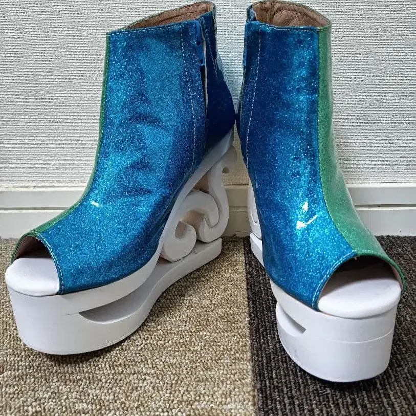 ⚠️ 발송은 연초 4일부터 가능합니다. 제프리 캠벨 스케이트 부츠입니다. 색상에 반해 구매했습니다. 한정판 색상이라고 합니다. 사이즈는 36(23cm)입니다. 제 평소 신발 사이즈가 23.5cm~였기 때문에 구매 시부터 혹시 못 신을지도 모르겠다고 생각했지만, 소재가 에나멜이라 단단해서 발꿈치가 들어가지 않아 시착조차 하지 못했습니다. 이전 판매자님도 실내 시착만 하셨다고 하니, 새상품급이라고 생각합니다. 구매 시 사용했던 포장재가 거의 그대로 남아있어 재이용할 예정입니다. 외부 박스는 상당히 낡았습니다. 새롭고 깨끗한 종이상자를 원하시는 분은 구매 전이든 구매 후든 상관없지만, 댓글로 알려주세요. 이하, 이전 판매자님의 상품 설명문에서 발췌 라메 믹스 에나멜에 투톤 컬러, 우드 밑창도 화이트 코팅입니다. 힐 높이: 12.5 / 스톰: 5cm 색상: 라메 블루 x 그린 바이컬러 미사용 새상품을 구매하여 시착해 보았는데 미묘하게 작아서 발이 아플 것 같아 포기했습니다. 집에서 시착만 했습니다. 평소 판매자의 신발 사이즈는 23~23.5cm입니다. 제프리 캠벨 신발은 빅 사이즈라고 들어서 안심했지만 에나멜이라 단단한 것 같습니다. 그래서 저와 같은 23.5cm를 신는 분에게는 작을지도 모릅니다. 저보다 발등이 낮으면 맞을지도 모릅니다 - 하지만 자기 책임으로 부탁드립니다. 참고로 저의 발 사이즈 발둘레: 22.4 / 다리 너비 9.2 / 발등 높이 5.8 / 와이즈 E ZOZO 매트로 측정했습니다.