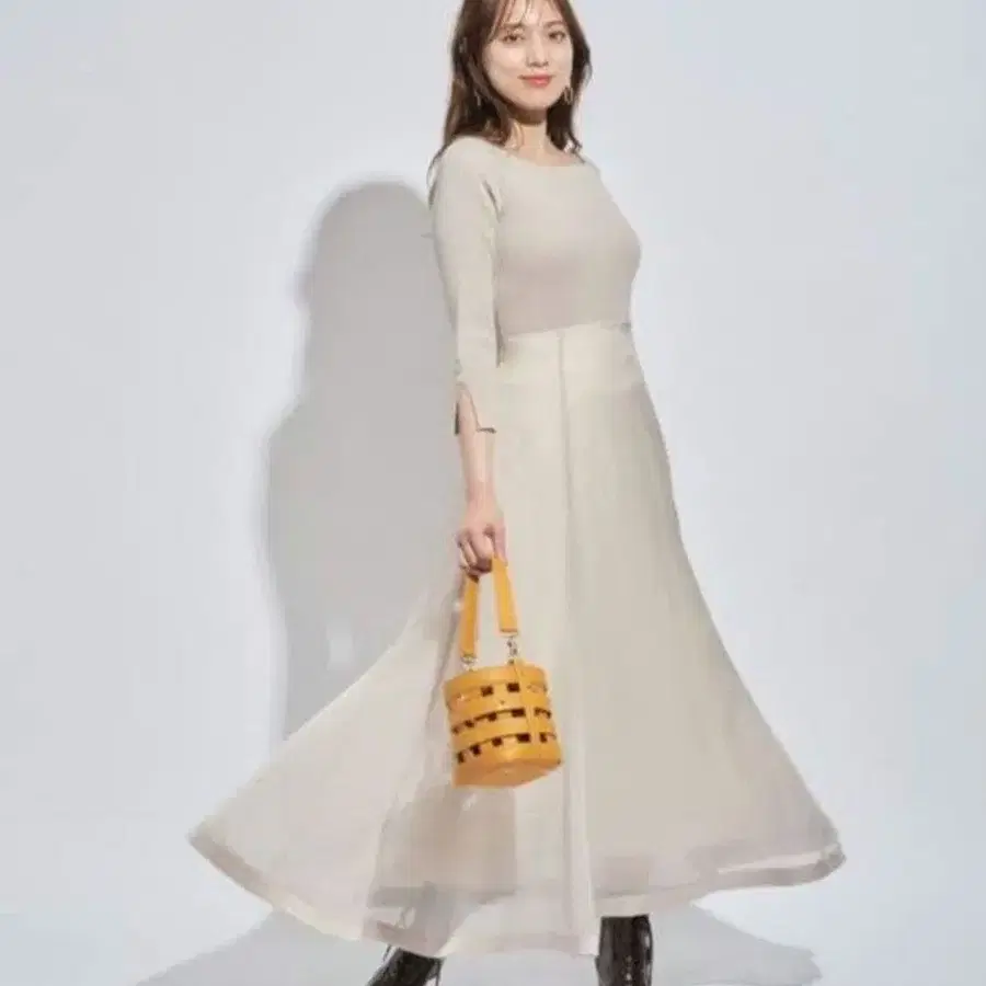 Mystrada 베이지 니트 쉬폰 롱 원피스
