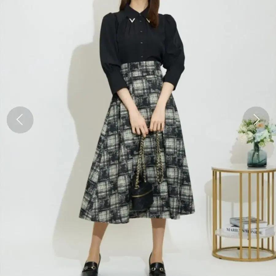 스윙글 아트 체크 턱 플레어 스커트 S 사이즈