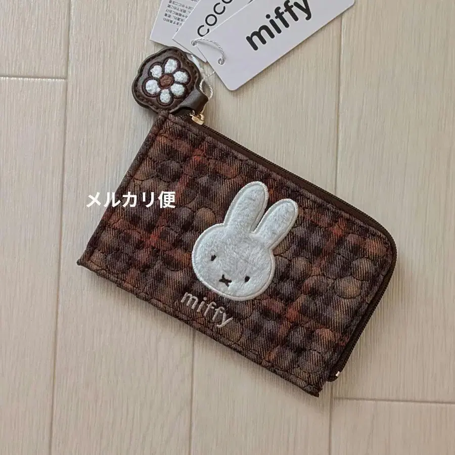 새상품 미피 패스 케이스 코인 케이스 체크 브라운