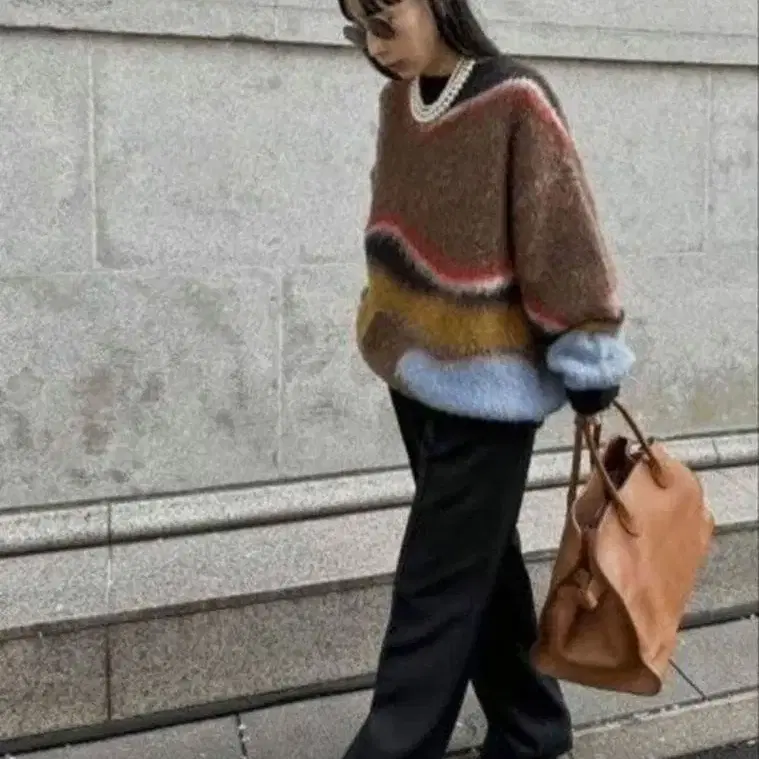 AMERI 오리지널 패턴으로 제작한 모헤어 오버사이즈 니트탑.
