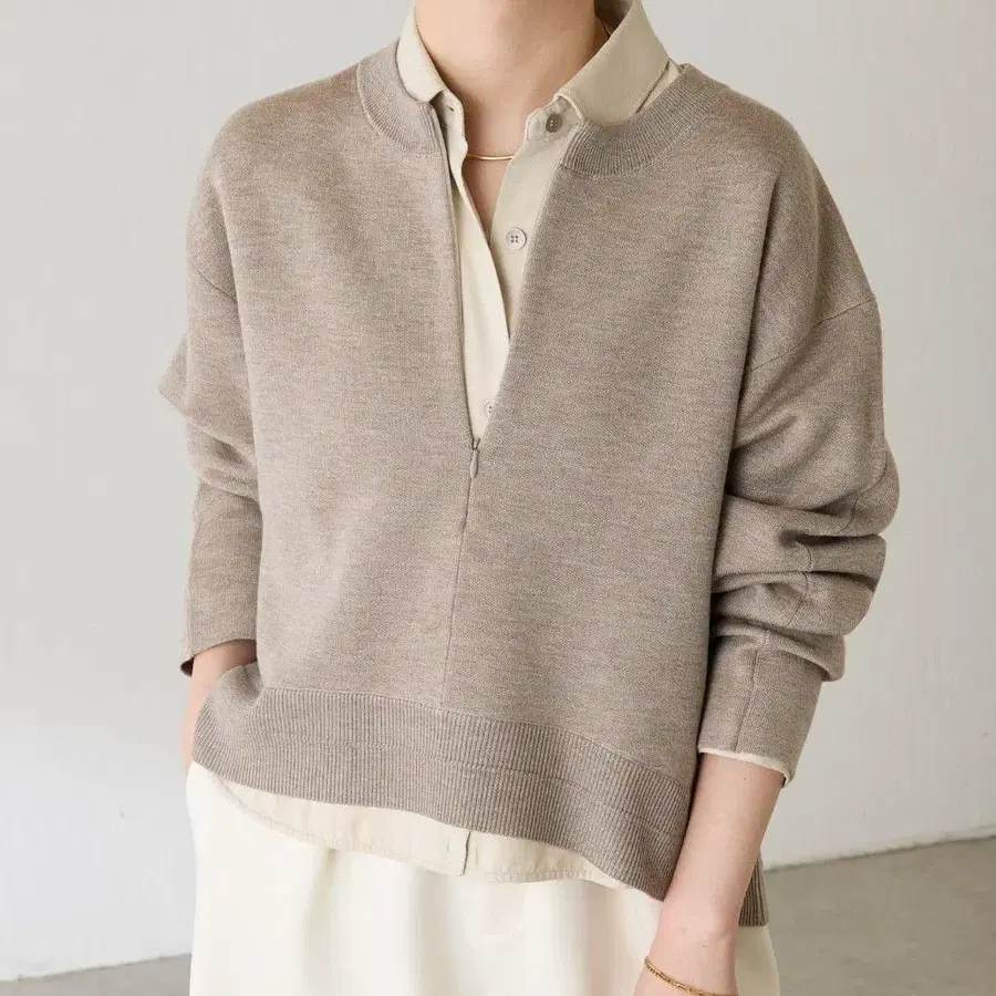 기모감이 없는 촘촘한 하이 게이지 편직으로 깔끔하게 연출할 수 있는 니트입니다. 너무 두껍지 않은 원단으로 봄에도 사용할 수 있습니다.