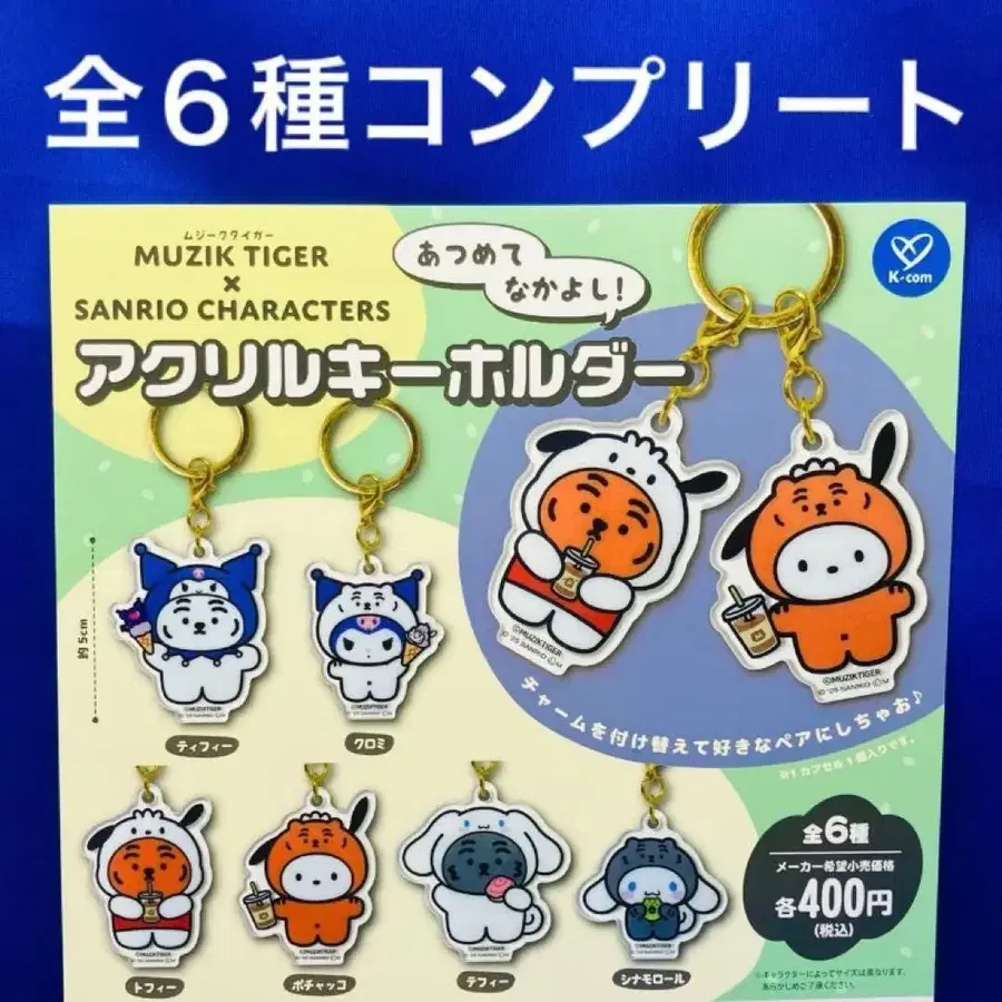 무지크 타이거 x 산리오 모여서 사이좋게! 아크릴 키링 전 6종