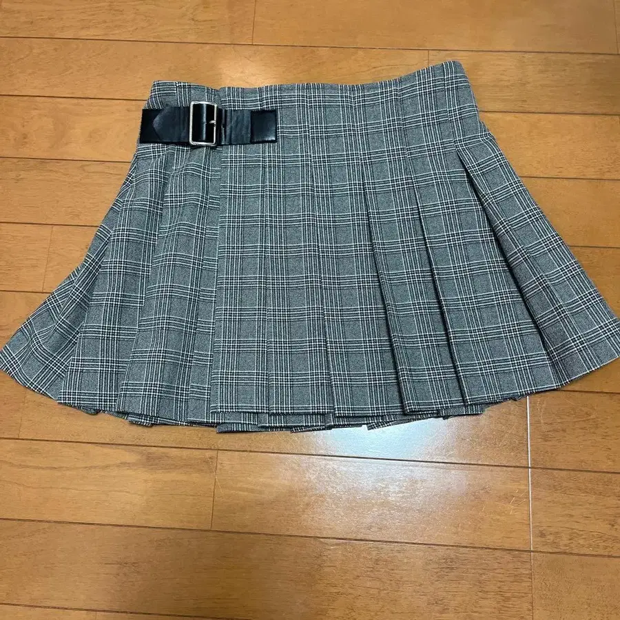 그레이 계열 체크 플리츠 스커트 벨트 포함