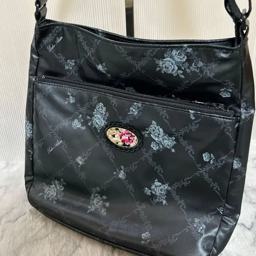 미사용급 [레이크 알스타] 꽃무늬 나일론 숄더백 블랙 사선 가케