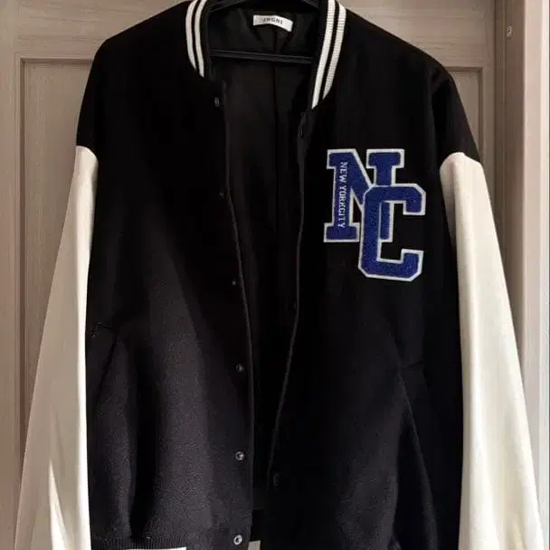 NC 로고 자수 바시티 자켓 프리 사이즈 블랙/화이트