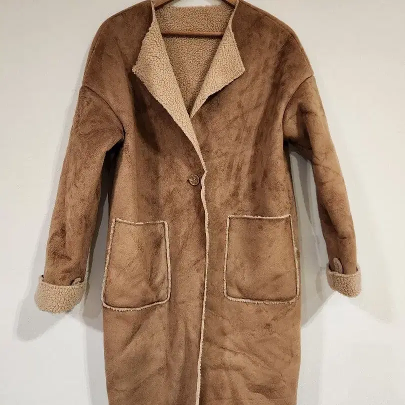 브라운 플리스 롱 코트 무스탕 여성용