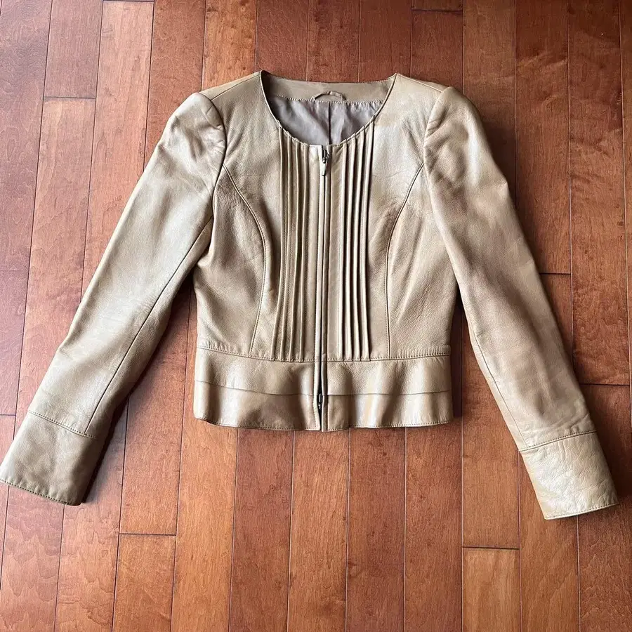 플리츠 디자인 라무 가죽 자켓 카멜/베이지