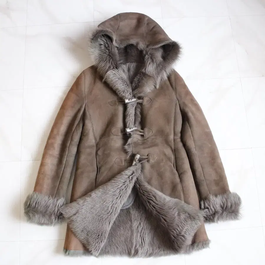 토스카나 무스탕 더플 코트 S 사이즈 램 가죽 퍼 후디