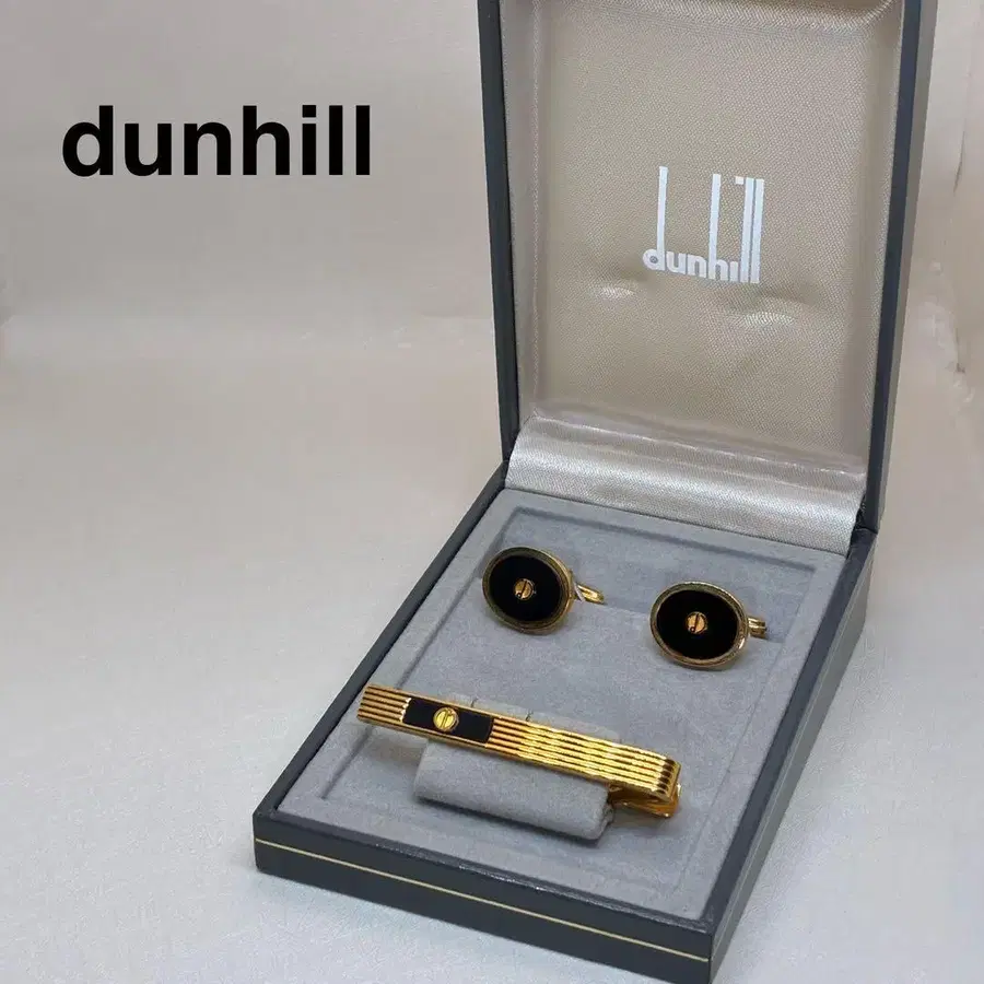 영국의 고급 신사 브랜드 **[ dunhill ( 던힐 ) ]** 의 커프스 단추와 타이 바 (넥타이핀)의 럭셔리 2세트입니다.