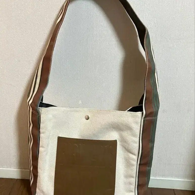 NOMADIS 브라운과 화이트 스트라이프 숄더백