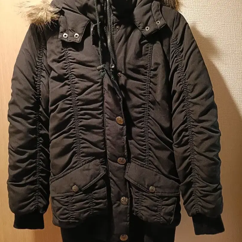 새상품 블랙 후드 부착 다운 자켓