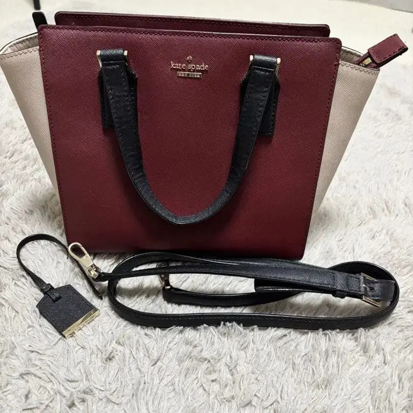 케이트 스페이드 버건디 화이트 숄더 핸드백