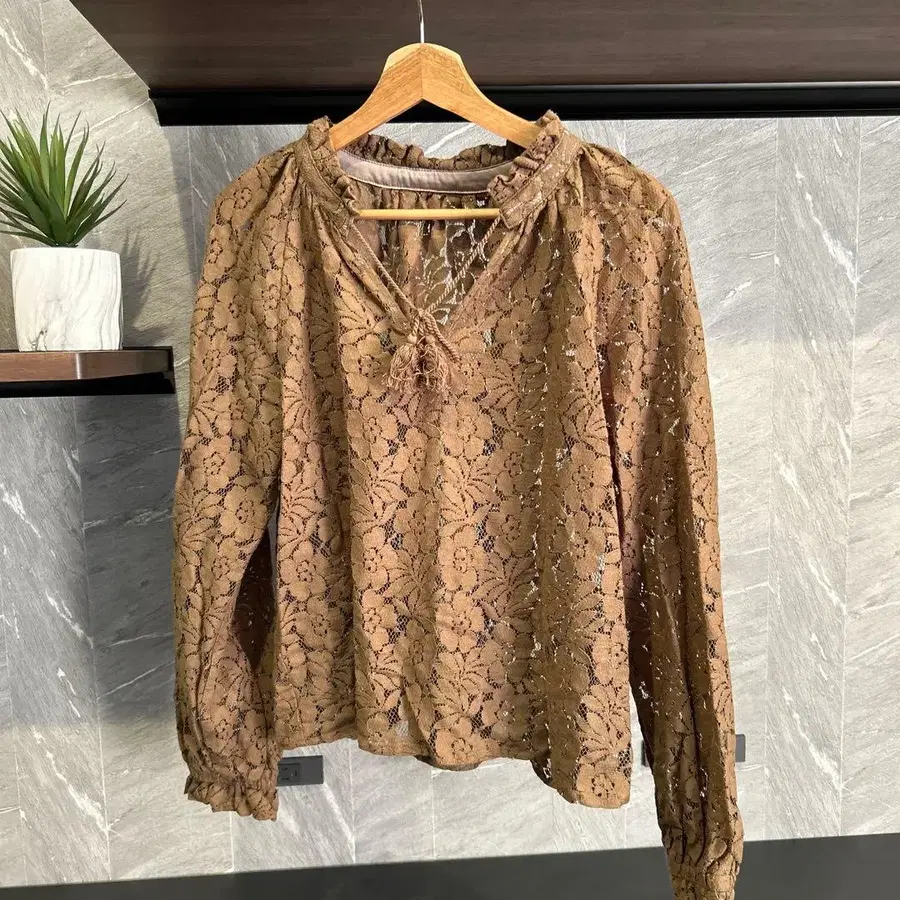 마우지 꽃무늬 레이스 블라우스