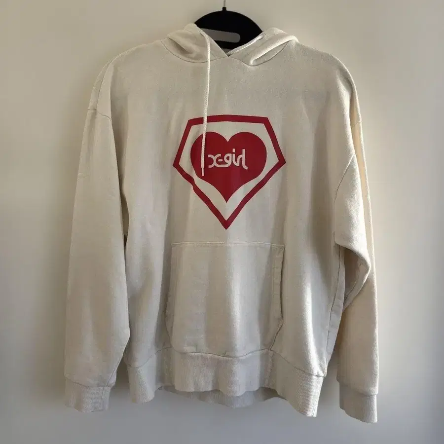x-girl SUPER LOVERS 콜라보 아이보리 하트 로고 후드티