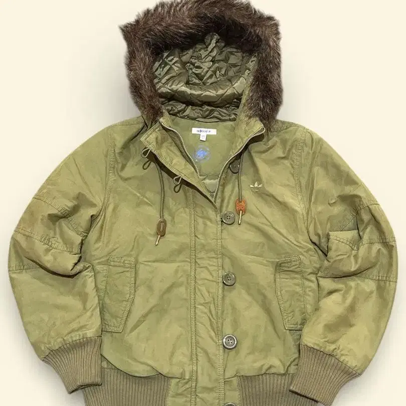 최근 인기 있는 Y2K 밀리터리 테이스트로, 짧은 기장 실루엣이 요즘 느낌을 주는 아이템입니다.