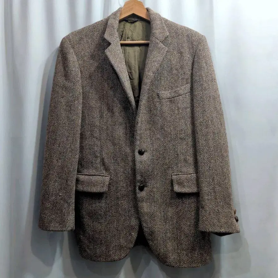 해리스 트위드 헤링본 울 테일러드 자켓 M 상당