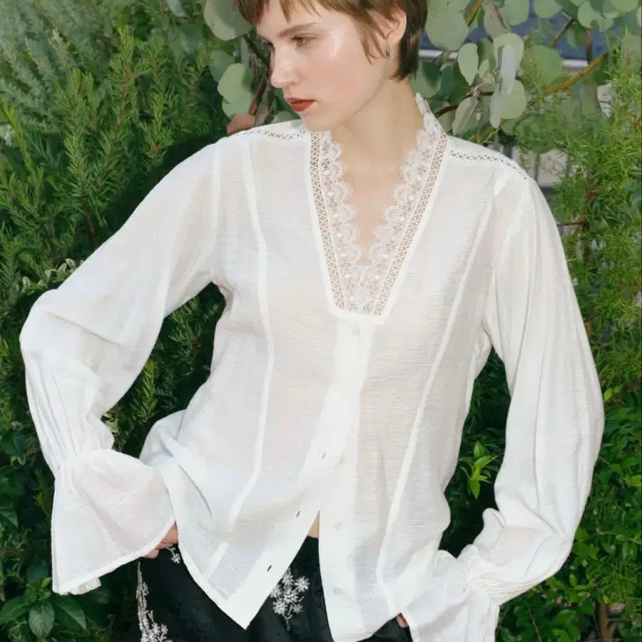 자수 장식 화이트 셔츠 긴팔 yae 미사용 새상품