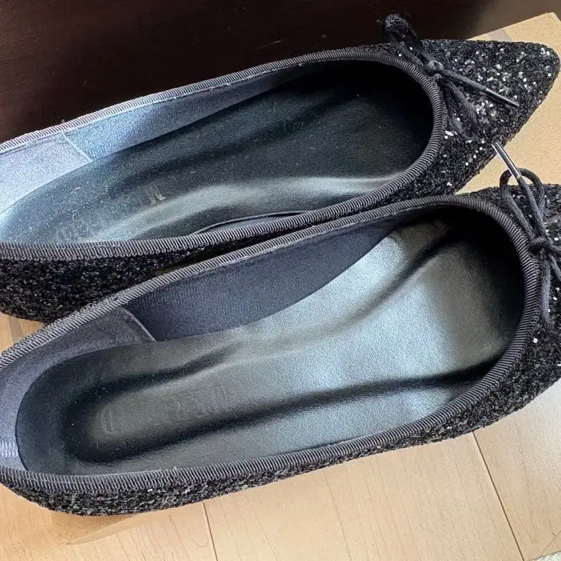 MERMAID 블랙 글리터 플랫슈즈 레인슈즈