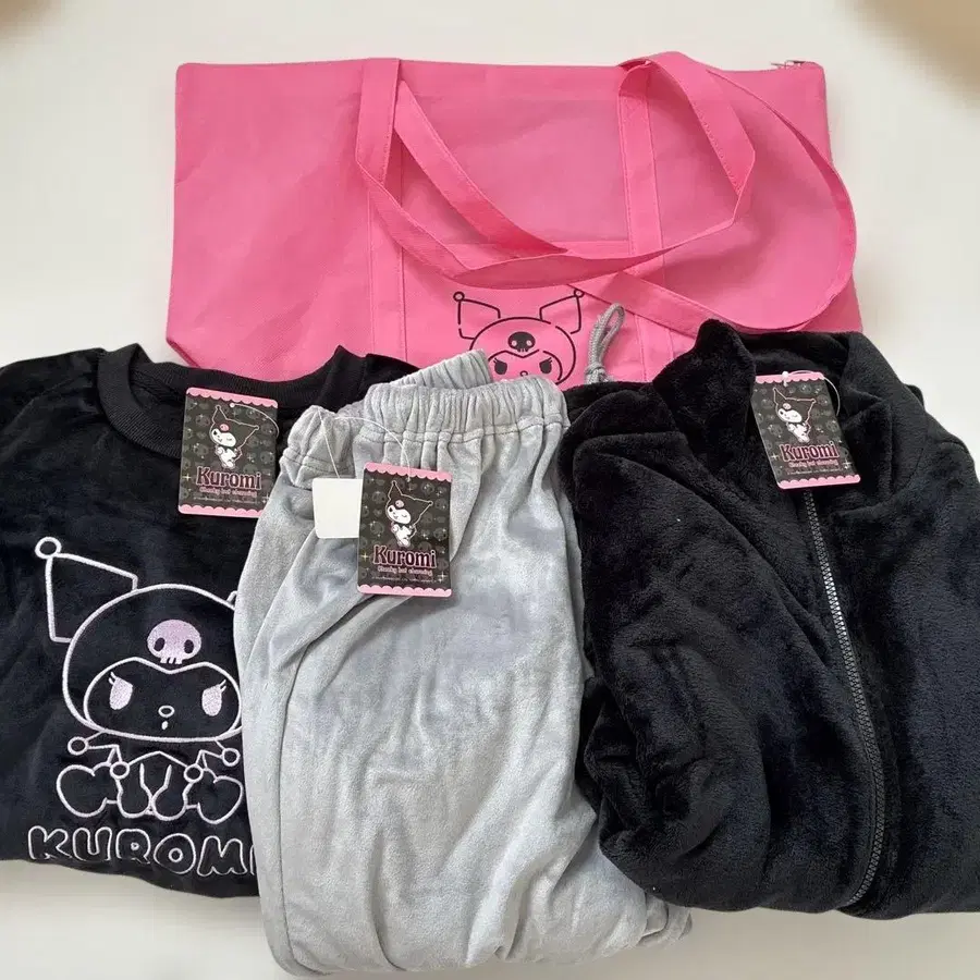 KUROMI 블랙 룸웨어 세트 토트백 포함 L