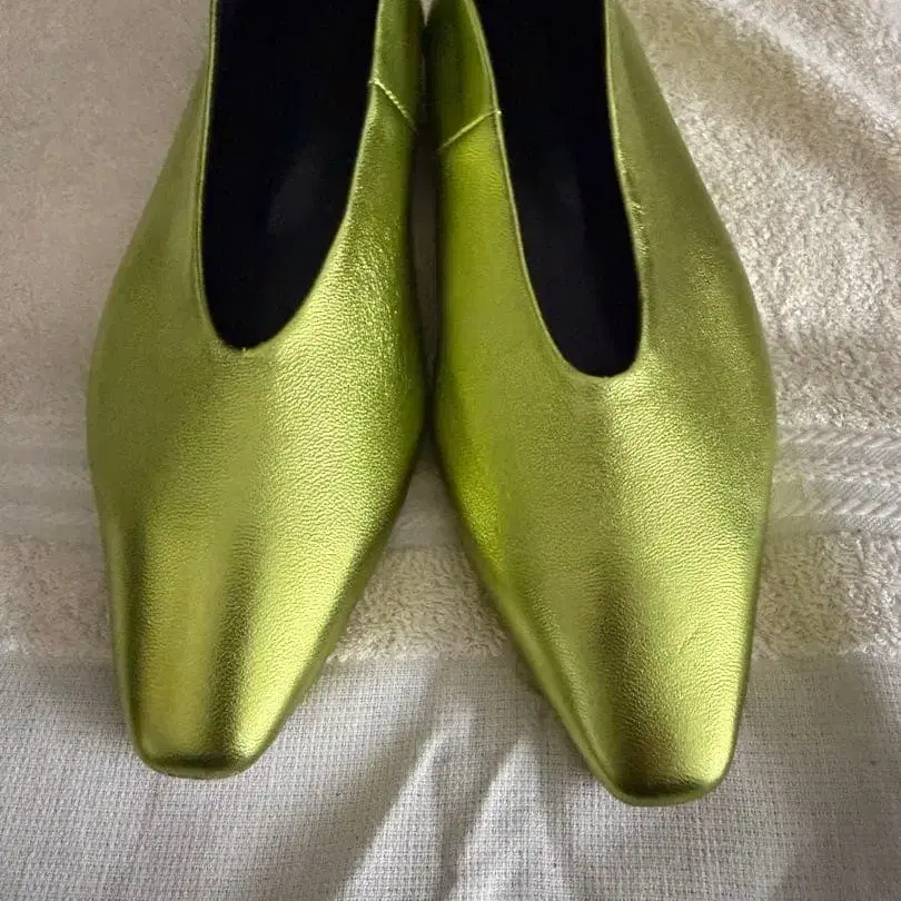 ROSE BUD 메탈릭 그린 스틸레토 플랫슈즈