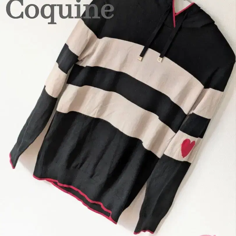 앙코키뉴 AnneCoquine 니트 보더 하트 후디 S 하트 로고