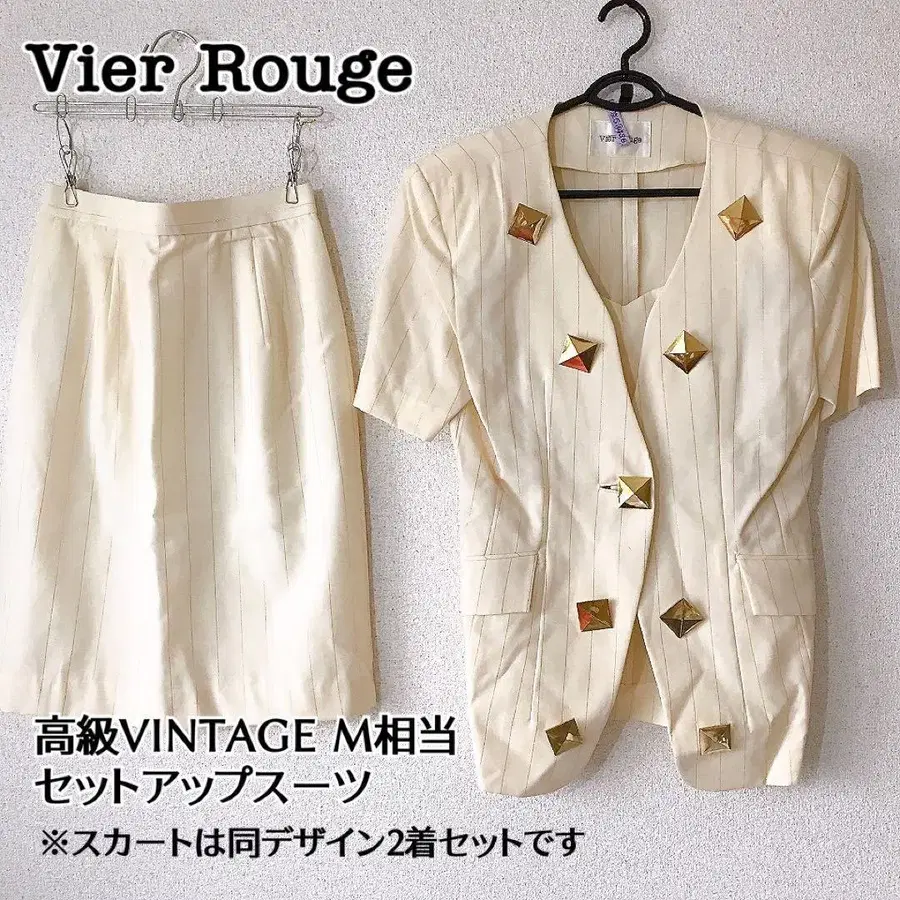 VINTAGE 셋업 수트 반팔 자켓 스커트 스트라이프